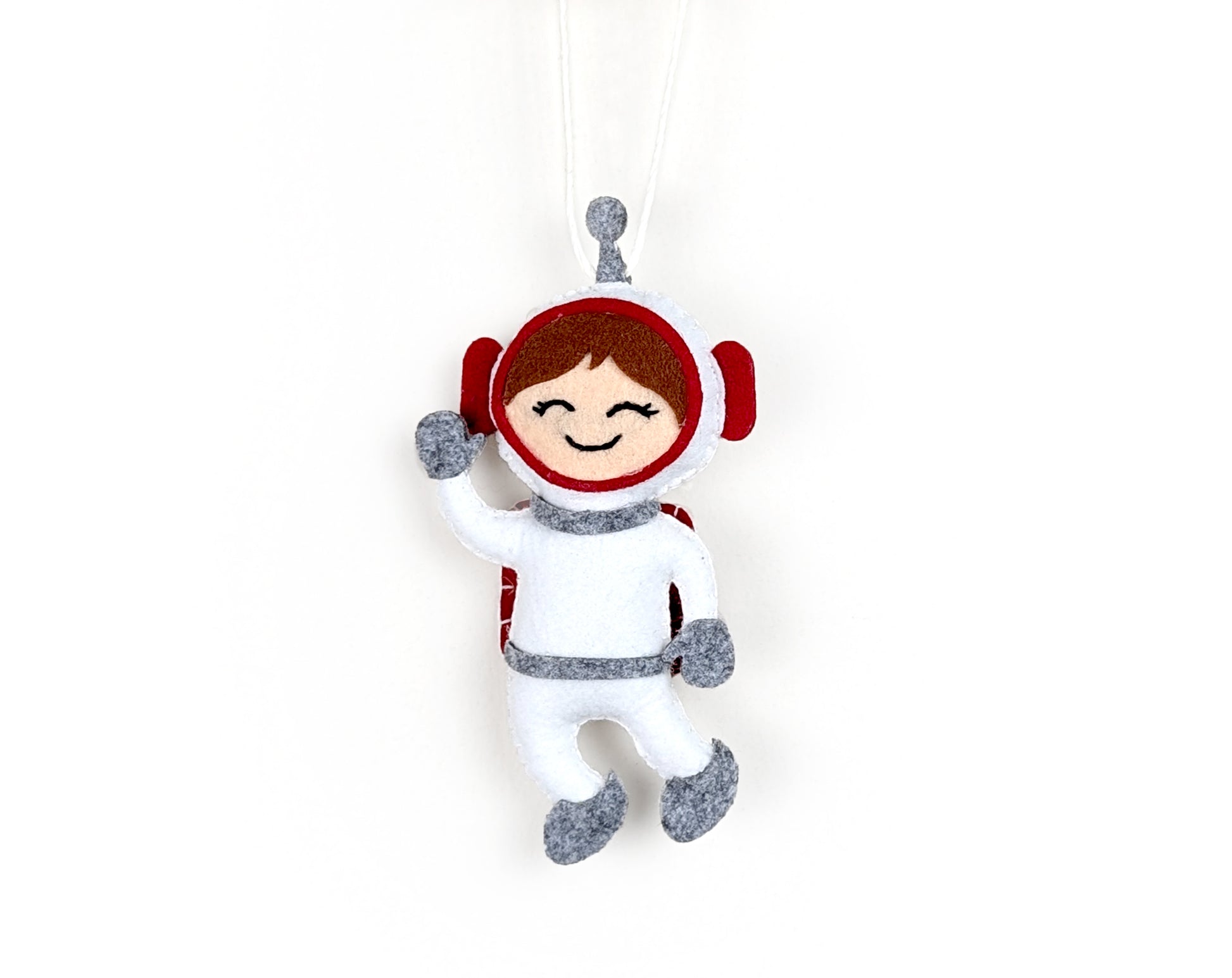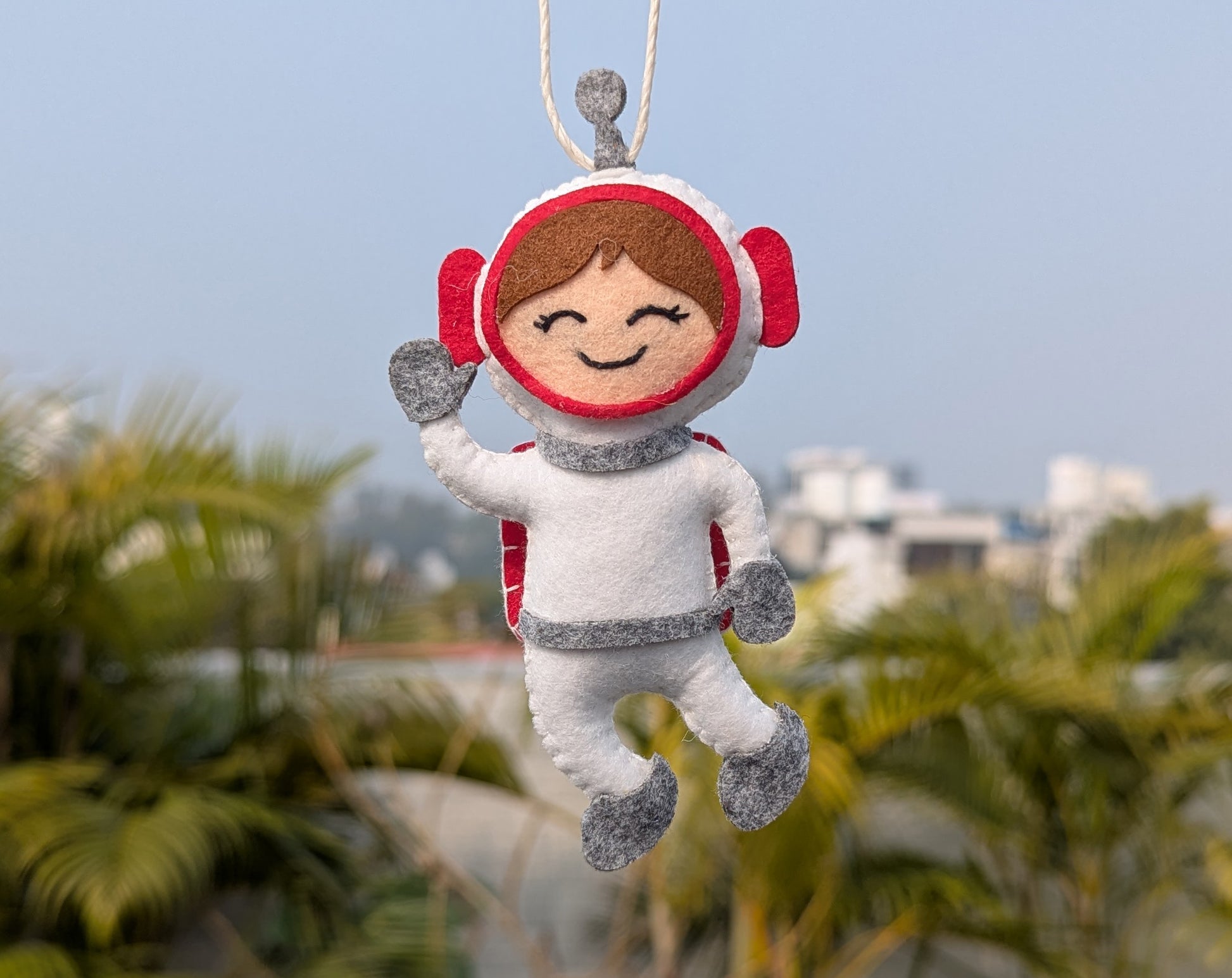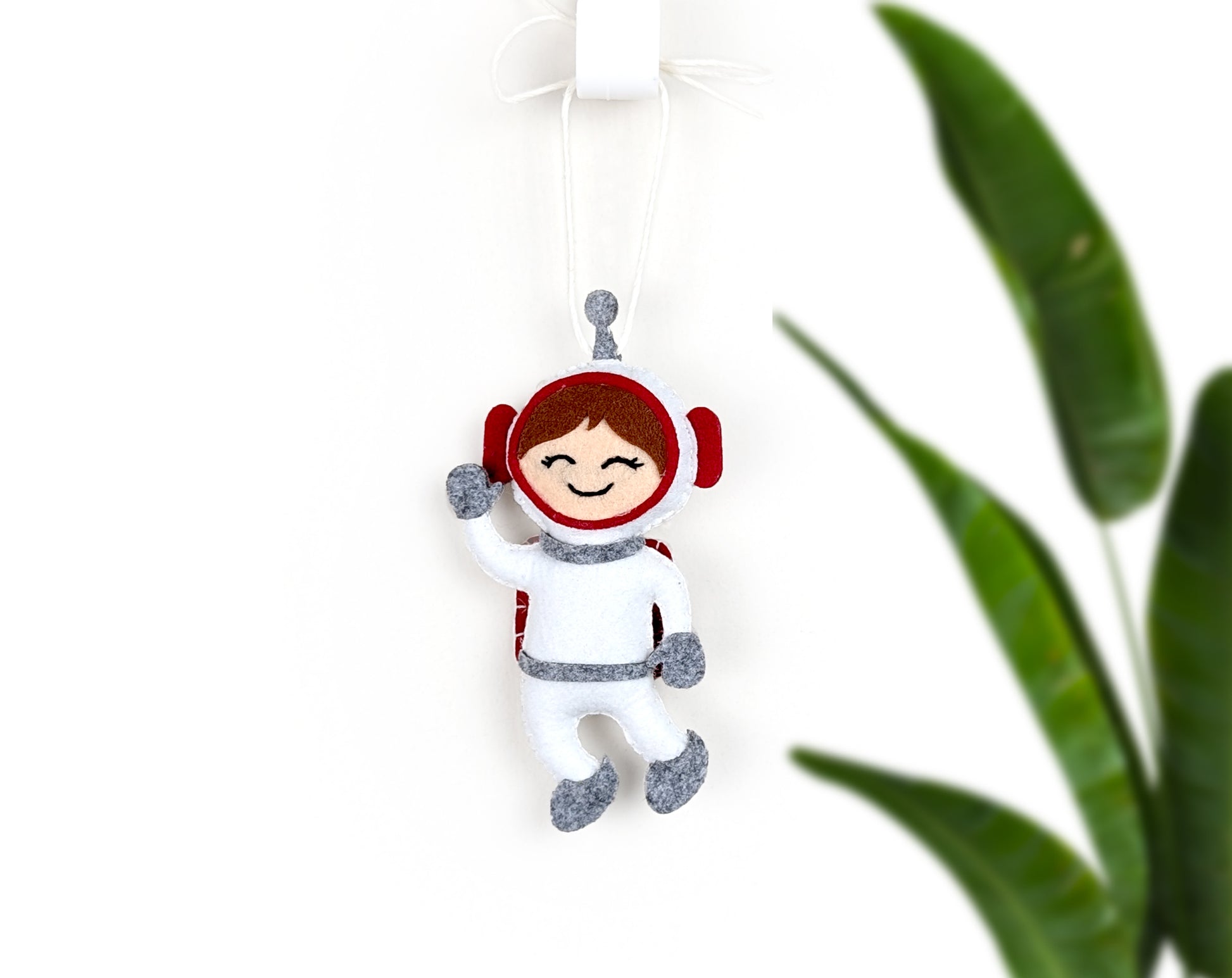 - Hang Anywhere: The red detailed miniature Astronaut makes for a precious hanging ornament to decorate your little girl's room wall, door, crib, bag or Christmas tree. The attached string allows this lightweight doll charm to be hung from just about anywhere.