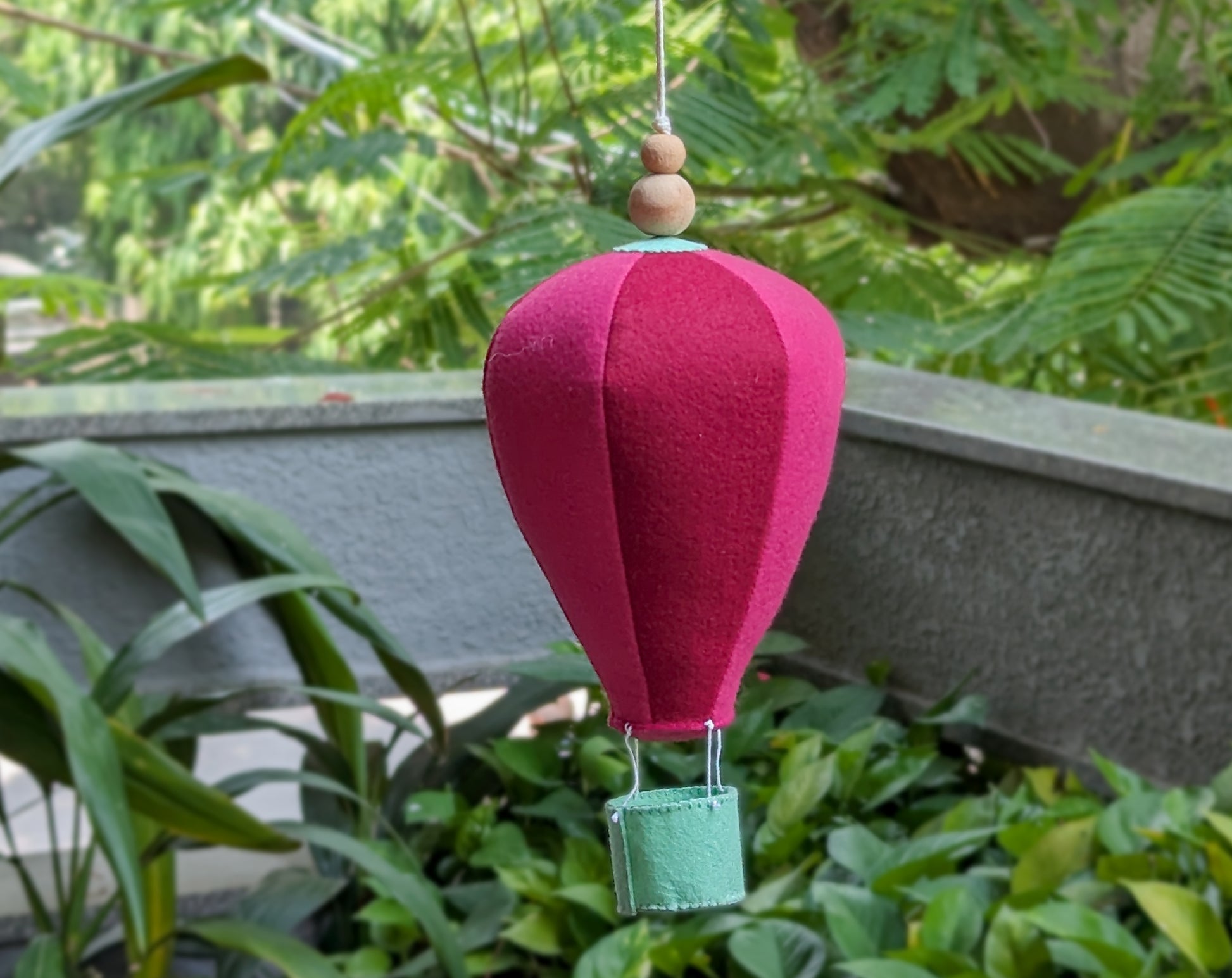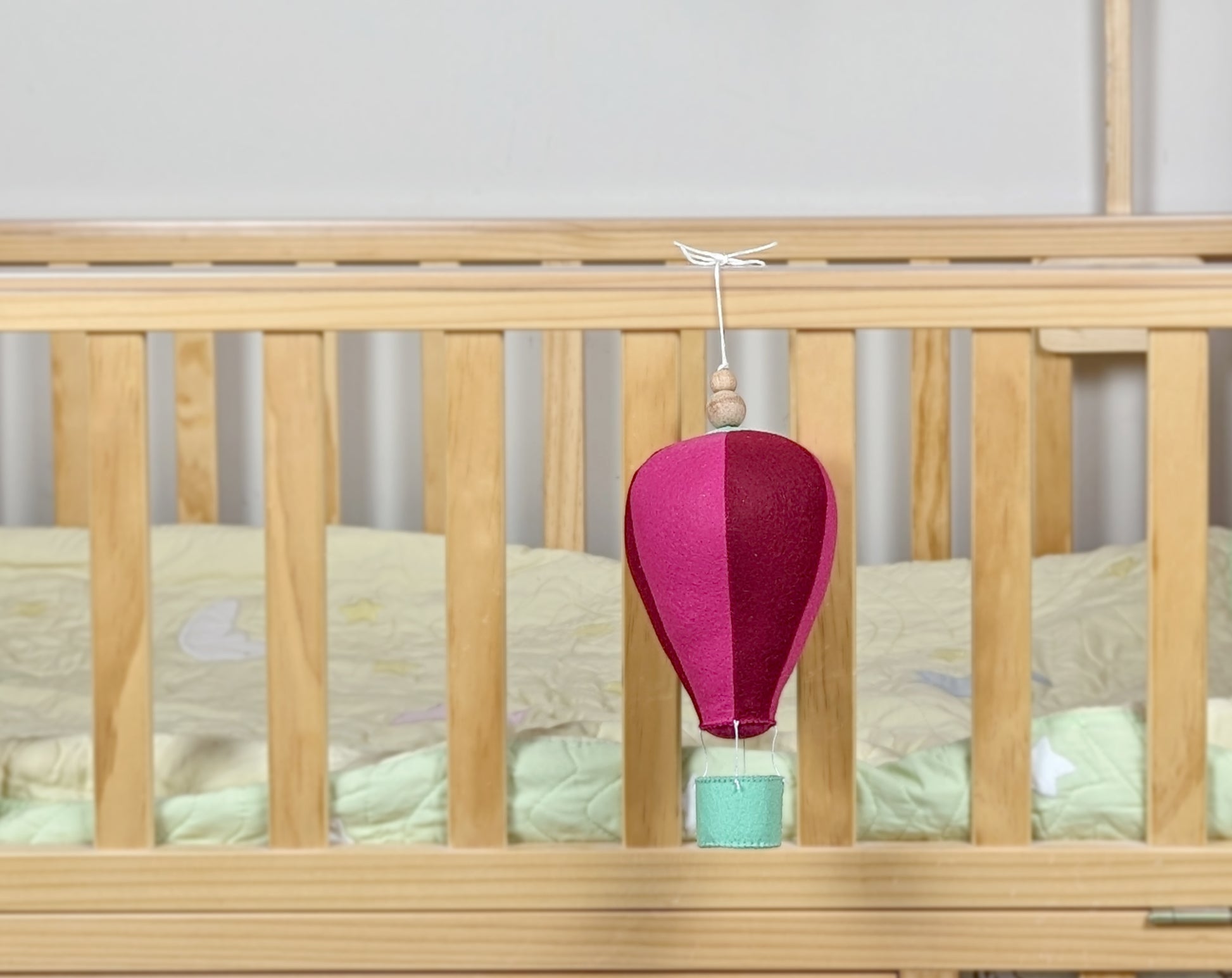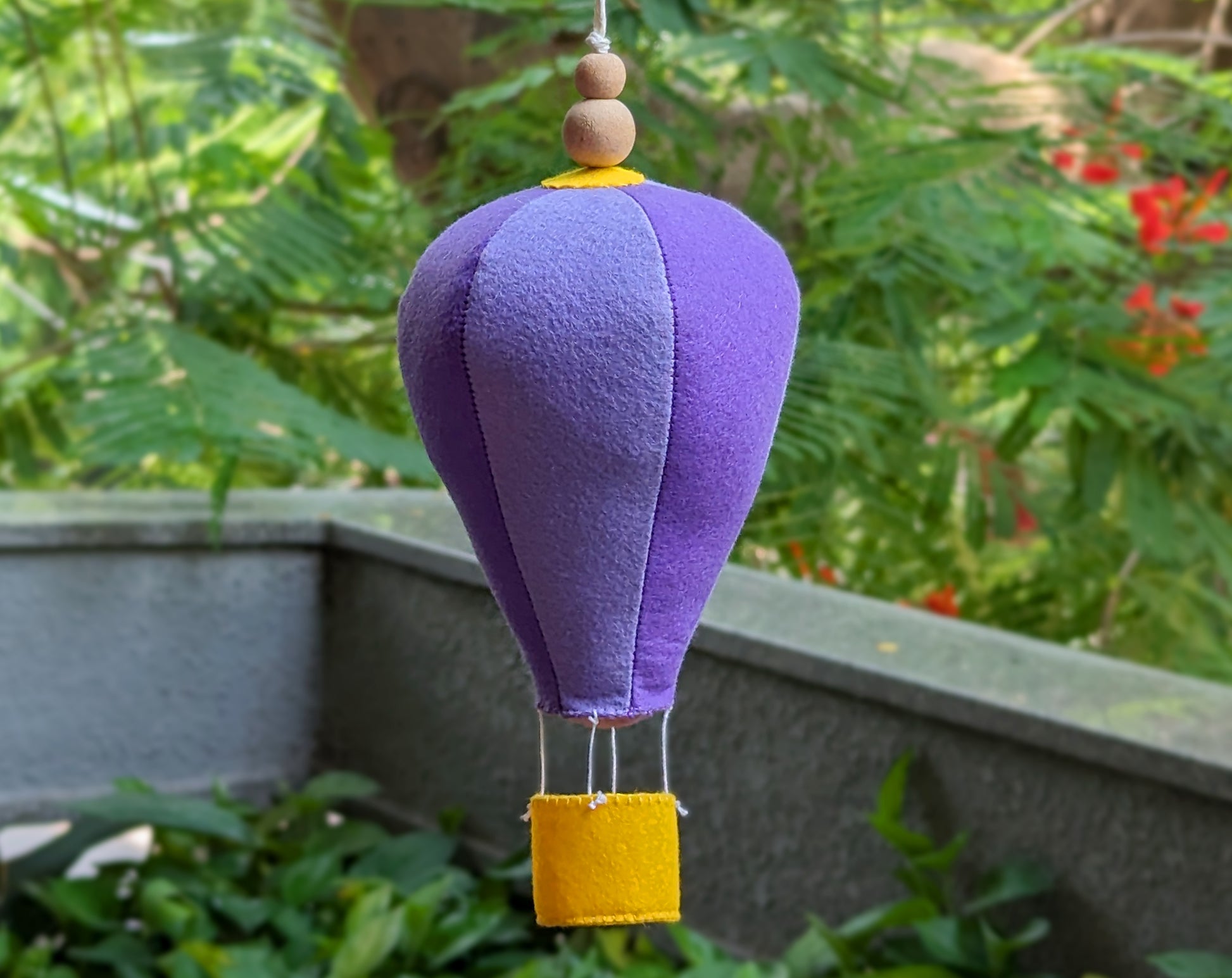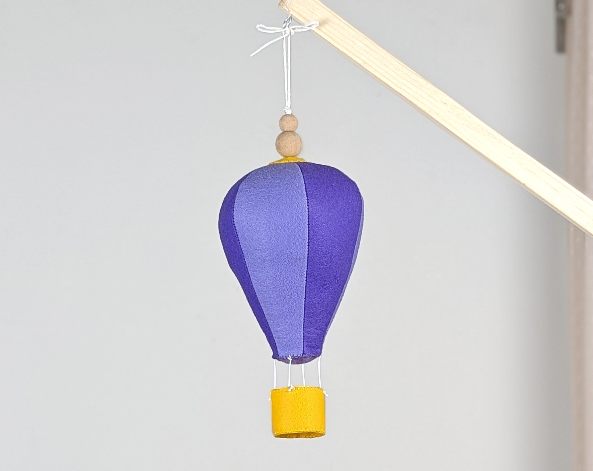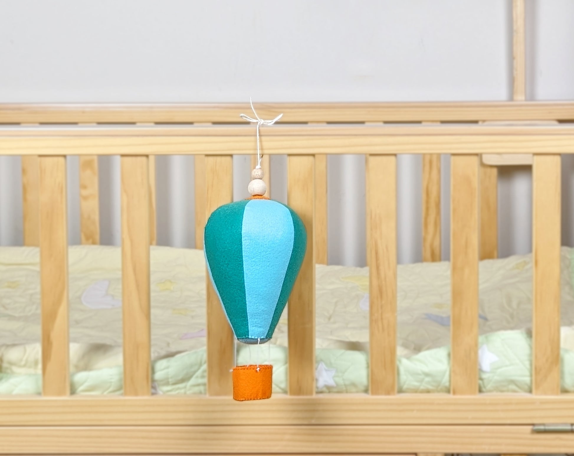 This listing is for one handmade plush Hanging Hotair Balloon ornament hanging from a cord. (Wall hook not included). Hang this Hotair balloon with pride and enliven your kid's bedroom or play area. Unleash your child's imagination and keep them busy for hours as they explore our one of a kind, handcrafted felt plush Ornaments, Wall Hangings, Garlands and Baby Mobiles. Each plush stuffed element is lovingly hand cut and hand-switched in a pet-free environment. Then it is filled with hypo-allergenic polyester stuffing and hung from a cord.