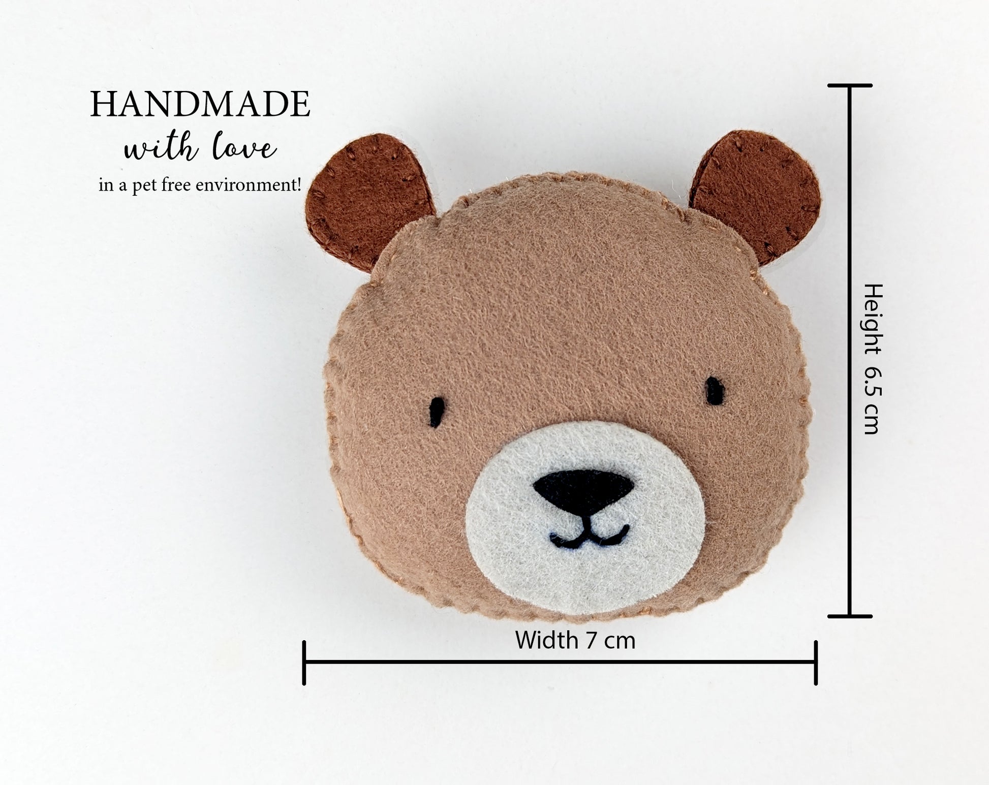 This charming set of Bears - Mountain Bear - Koala Bear - Panda Bear makes for a delightful gift for any child or an animal lover adult. Included are 3 soft, plush animal faces - Mountain Bear, Koala Bear and Panda Bear crafted from cozy felt. The produt is plastic free and safe for kids. They have sweet facial features that will invite hugging and loving. Kids can pin them proudly to their shirt to show off their favorite jungle animal. It is a special way to say thank you for a birthday party or return a gift - with cuddly animal friends any wildlife lover is sure to adore.
