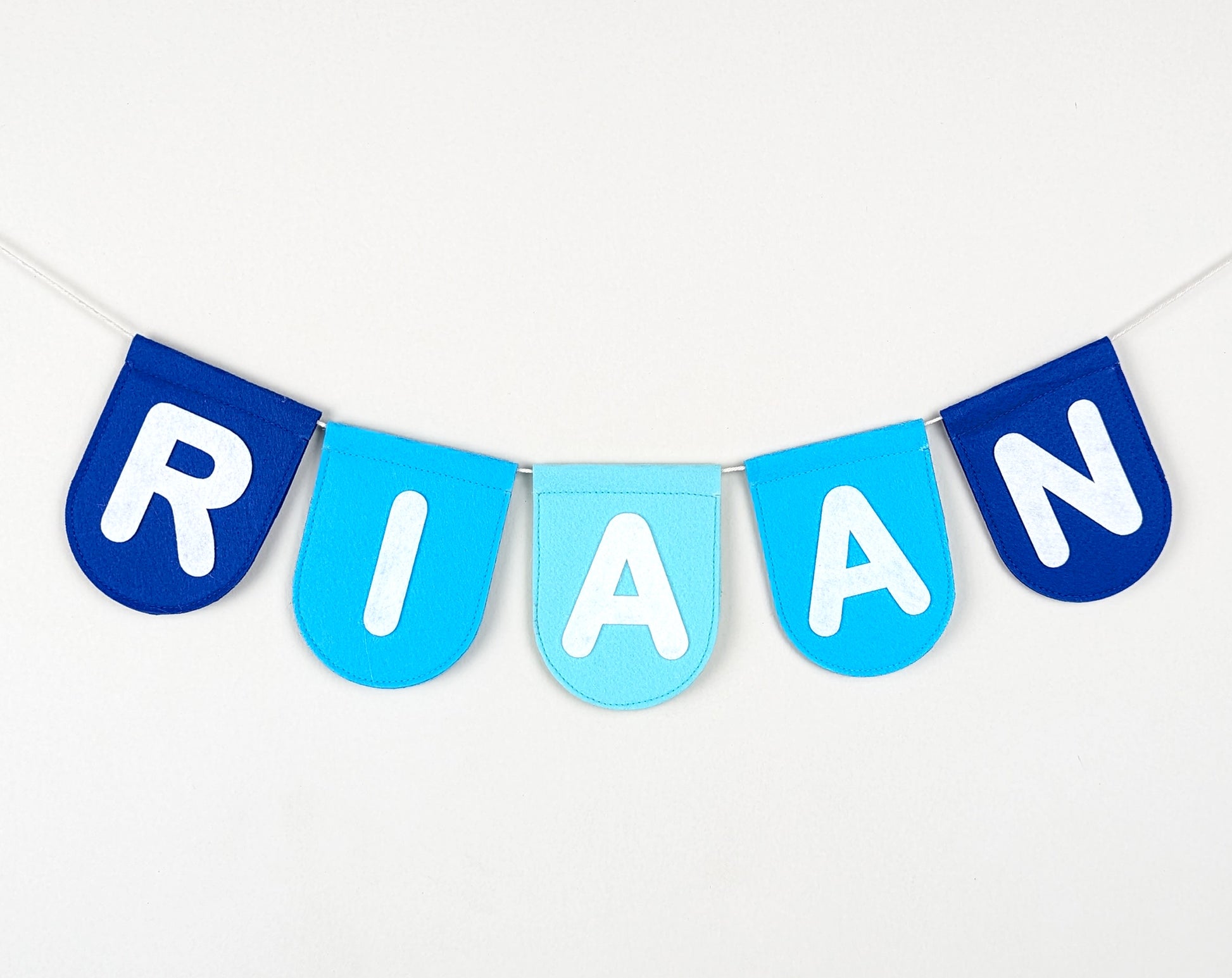 - Package Contains: 1 Personalised Name Bunting in Blue Colour Scheme