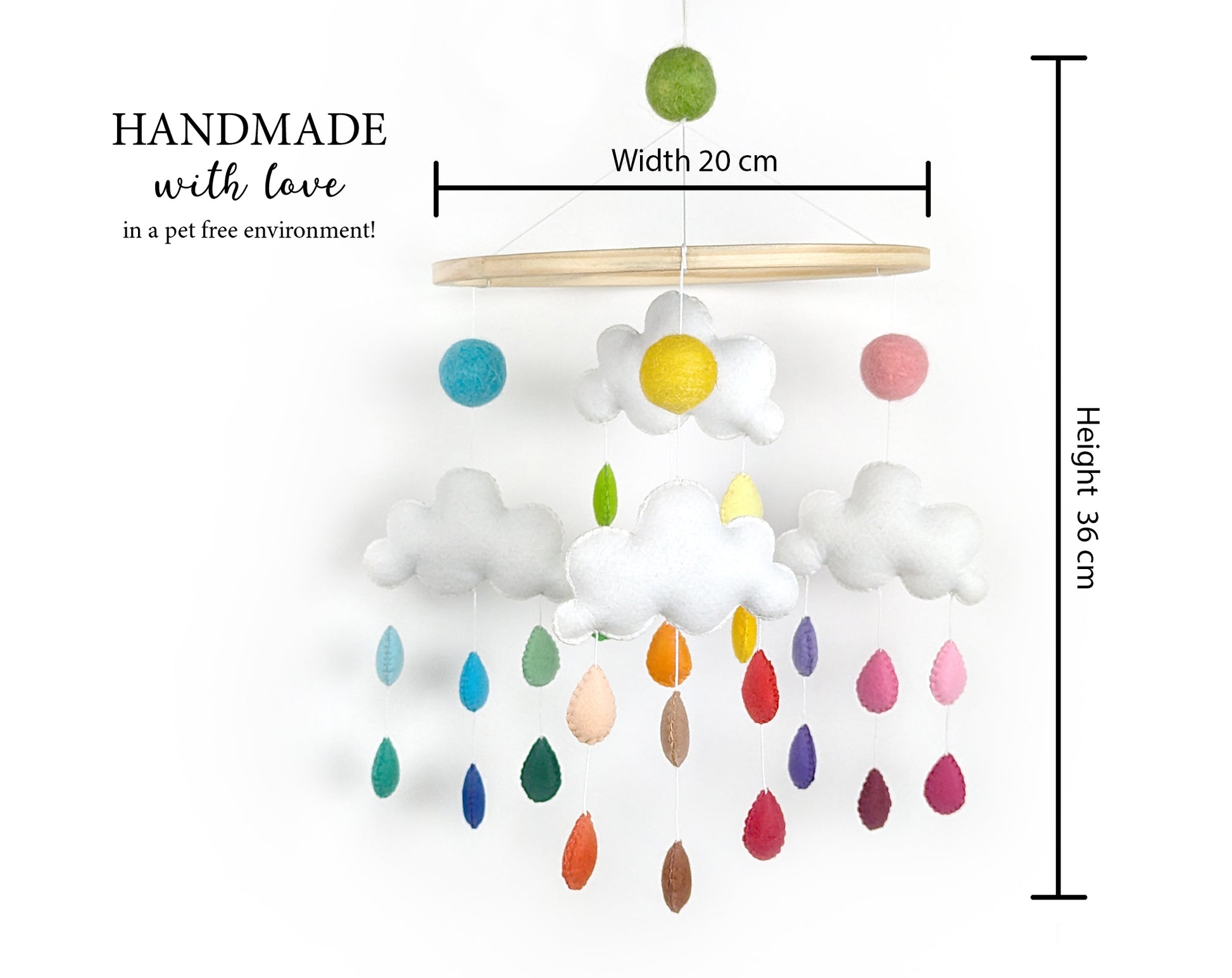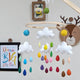 This listing is for one handmade plush Monsoon Cot Mobile. (Wall hook/crib arm not included). This Baby Mobile includes 4 Rainy Clouds. Unleash your child's imagination and keep them busy for hours as they explore our one of a kind, handcrafted felt plush Ornaments, Wall Hangings, Garlands and Baby Mobiles.