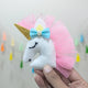 Add a dash of magic to your accessories with this handmade felt unicorn brooch, crafted essories with this handmade felt unicorn brooch, crafted with premium quality materials. This adorable plush pin features a stuffed white unicorn head with a glittering golden horn, soft pink tulle mane, and charming pastel detailsâincluding a blue bow topped with a pearl accent.