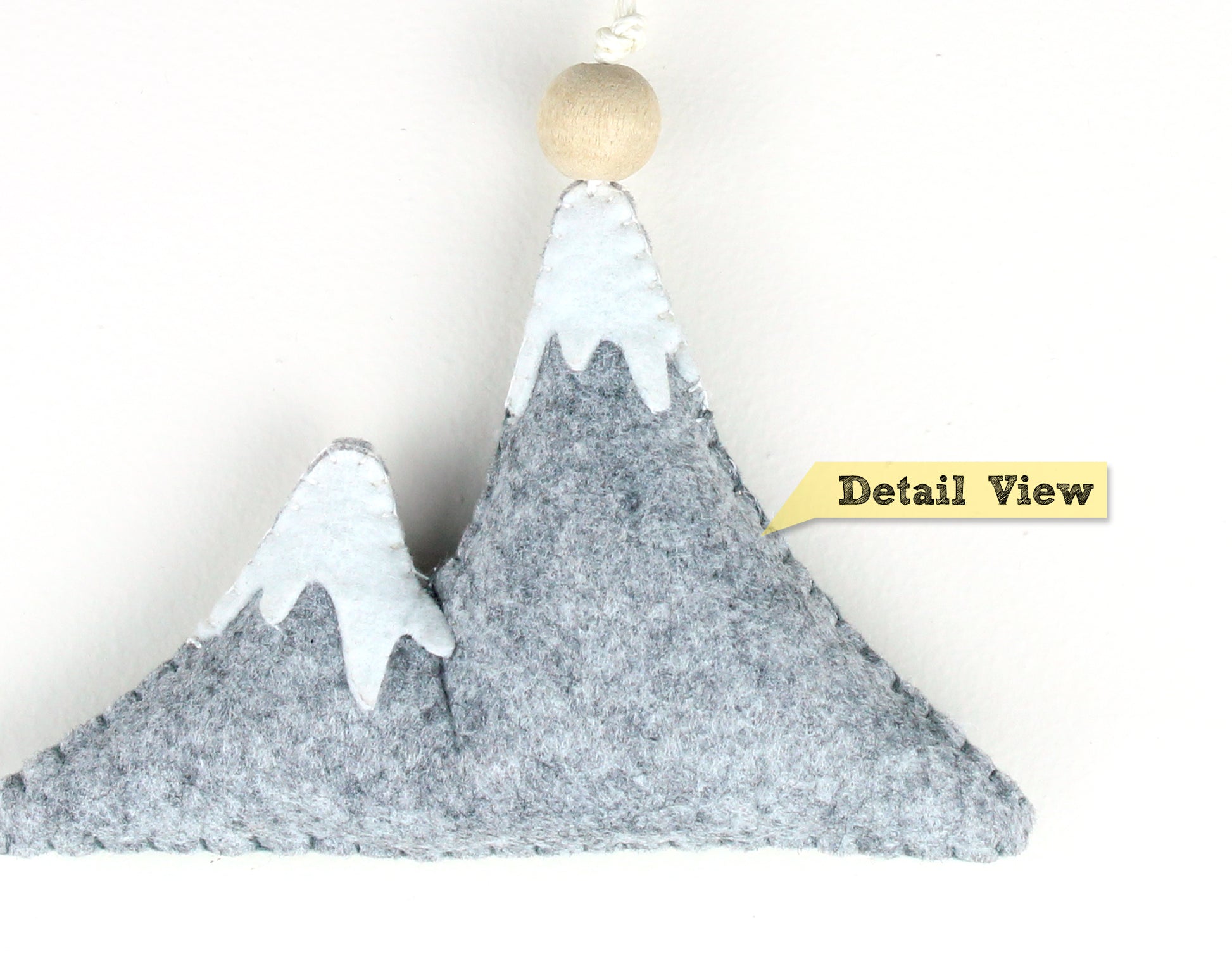 This listing is for one handmade plush mountain ornament hanging from a cord. (Wall hook not included). Our handmade double peak mountain Ornament is a must-have for any child's nature-inspired room or baby nursery decor. Unleash your child's imagination and keep them busy for hours as they explore our one of a kind, handcrafted felt plush Ornaments, Wall Hangings, Garlands and Baby Mobiles. Each plush stuffed element is lovingly hand cut and hand-switched in a pet-free environment. Then it is filled with hypo-allergenic polyester stuffing and hung from a cord. Made with premium quality felt fabric, it is extremely safe to your baby's touch. Materials: felt, wooden beads, cord, polyester stuffing, embroidery thread and lots of love. Kindly Note: Colors depicted on your screen may be slightly different from the actual product. While we try to accurately display the colors of all our products, the colors you see will depend on your monitor and may not be accurate because of the variations in electronic screen settings (computer/laptop/tablet/smartphones).